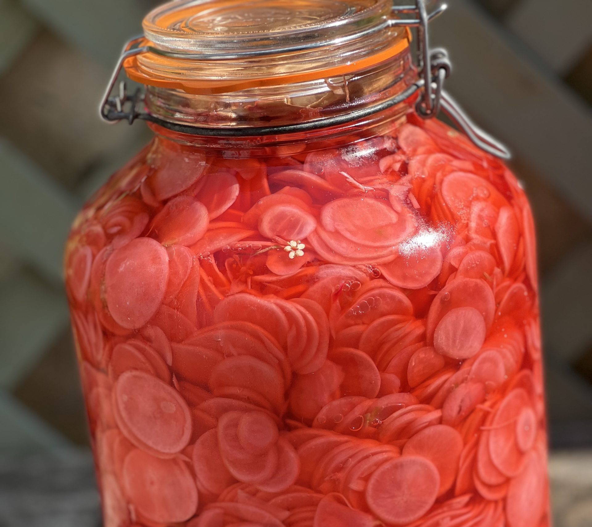 A shrub is a way to use some vinegar to make some more complex drinks. It also preserves well so this is a wonderful new use to pickle radishes and make drinks of elderflower.